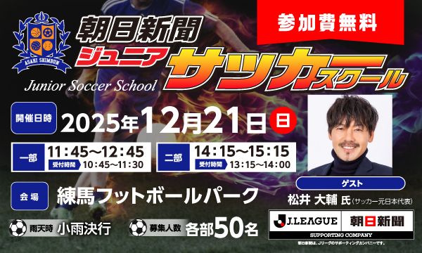【12/21 練馬開催】朝日新聞ジュニアサッカースクール