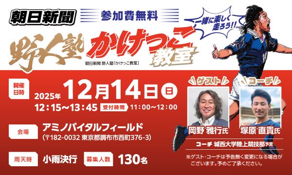 【12/14 調布開催】朝日新聞「野人塾 かけっこ教室」