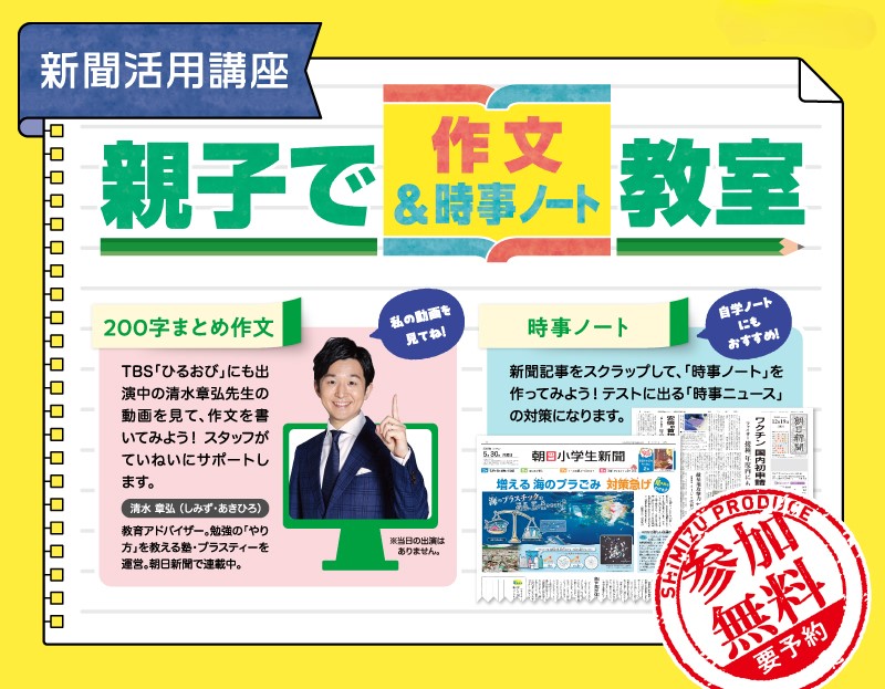 11月15日(土)朝日新聞活用講座 親子で作文&時事ノート教室【新見市会場】